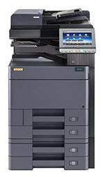 In modernen Büros stehen flexible DIN-A3-Farbmultifunktionssysteme ganz oben auf der Wunschliste. Sie sollen möglichst alle noch so unterschiedlichen Anforderungen der Nutzer erfüllen. Das heisst, dass eine hohe Bedienerfreundlichkeit Pflicht ist. Das Multifunktionssystem 3206ci ist extra für diese Ansprüche entwickelt worden. Überzeugende Farbdokumente werden mit einer Geschwindigkeit von 32 DIN-A4-Seiten pro Minute mit bis zu 1.200 dpi Druckauflösung erstellt. Vielfältige Weiterentwicklungen in den Bereichen Qualität, Produktivität, Sicherheit und Energieeffizienz setzen neue Maßstäbe. Ein intuitiv zu bedienendes großes Touch-Panel, die Verarbeitung von Papiergewichten bis 300 g/m⊃2; und Formaten bis SRA3 aus der Papierkassette sowie die Erstellung von Broschüren in einem Arbeitsgang lassen auch dann keine Wünsche offen, wenn hohe Ansprüche an die Qualität der fertigen Dokumente gestellt werden. Zur Schonung von Ressourcen werden Leerseiten beim Kopieren oder Scannen automatisch herausgefiltert. Mit der integrierten HyPAS-Schnittstelle passt sich die Funktionalität des Systems individuell an Ihre Arbeitsabläufe an. 3207ci MFP: Eine noch professionellere Farbwiedergabe erhalten Sie durch den Einsatz des optionalen Fiery® Controllers. |