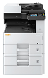P-2540i MFP Digitales Multifunktionssystem D ieses kompakte DIN-A3-Multifunktionssystem bietet alles, was ein Team zur Erledigung und Erleichterung der täglichen Aufgaben braucht. Ausgestattet mit einem automatischen Originaleinzug, einer integrierten Duplexeinheit für papiersparendes doppelseitiges Drucken, einem Papiervorrat von 600 Blatt sowie einem 50-Blatt Job Separator, lässt es sich jederzeit ganz einfach entsprechend der individuellen Anforderungen erweitern. Zum Beispiel mit einem optionalen Fax Kit, zusätzlichen Papierkassetten, einer WLAN-Karte oder auch einer Festplatte. Seine intuitive Bedienung und praktischen HyPAS-Apps machen es schnell zu einem unverzichtbaren Partner in jedem Büro. |